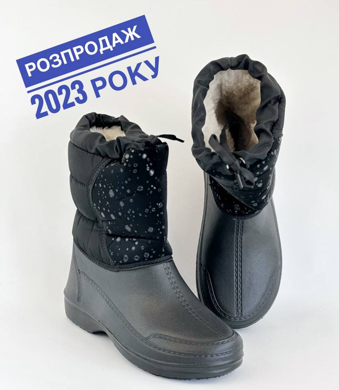Універсальний варіант – від холоду і сльоти Похмура осінь … Мокра весна … Сніжна зима … У черевиках занадто сиро, а в гумових чоботах ноги просто мерзнуть. Вам знову не в чому ходити? Не турбуйтеся: якраз для такої примхливої погоди і придумані демісезонні жіночі комбіновані чоботи – “Тайга”! Чому їх варто полюбити? · По-перше, верх чобота з щільного текстилю – не тільки оберігає ноги від холоду, але і відмінно виглядає в поєднанні з зимовим одягом. · По-друге, нижня частина, яка закриває стопу, зроблена литним методом- з дуже легкого, пружного і водонепроникного сучасного матеріалу ЕВА – і щільно пришита до верхньої частини чобота. · А за додаткову м’якість і тепло відповідає підкладка зі штучного хутра. · Жіночі чоботи “Тайга” – взуття для тих, хто любить тримати ноги в теплі і сухості!