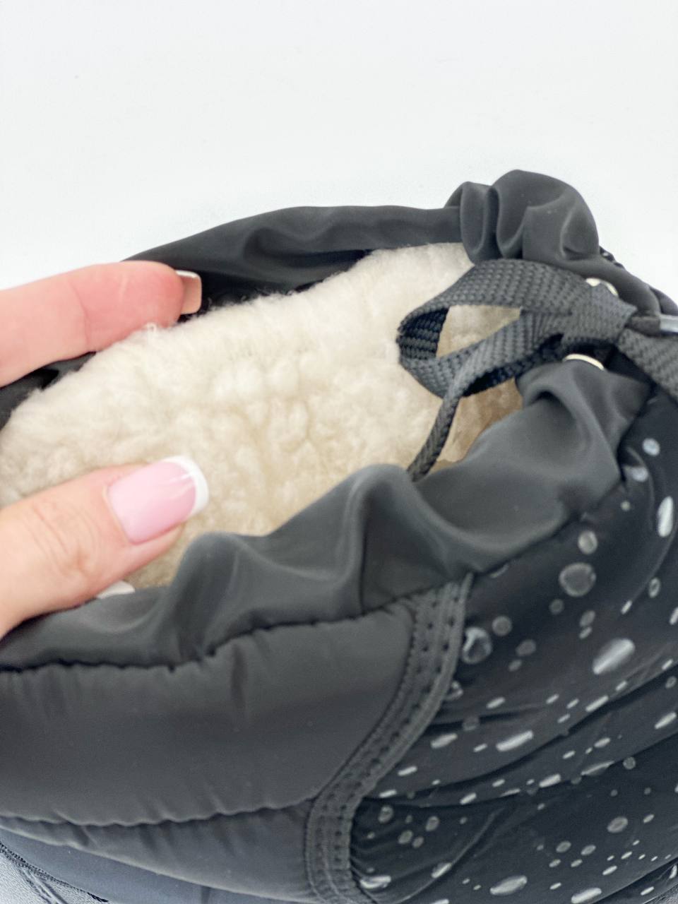 Переваги: · Жіночі чоботи “Тайга” на штучному хутрі – це: · Зручно – спеціальний шнурок дозволяє регулювати повноту і щільність прилягання халяви · Комфортно – дуже теплі, приємні, легкі на нозі · Стильно – оригінальний дизайн і ошатні малюнки, підходять до пуховику